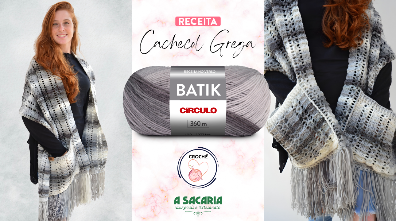 Cachecol com Bolso Grega em Crochê com Fio Batik